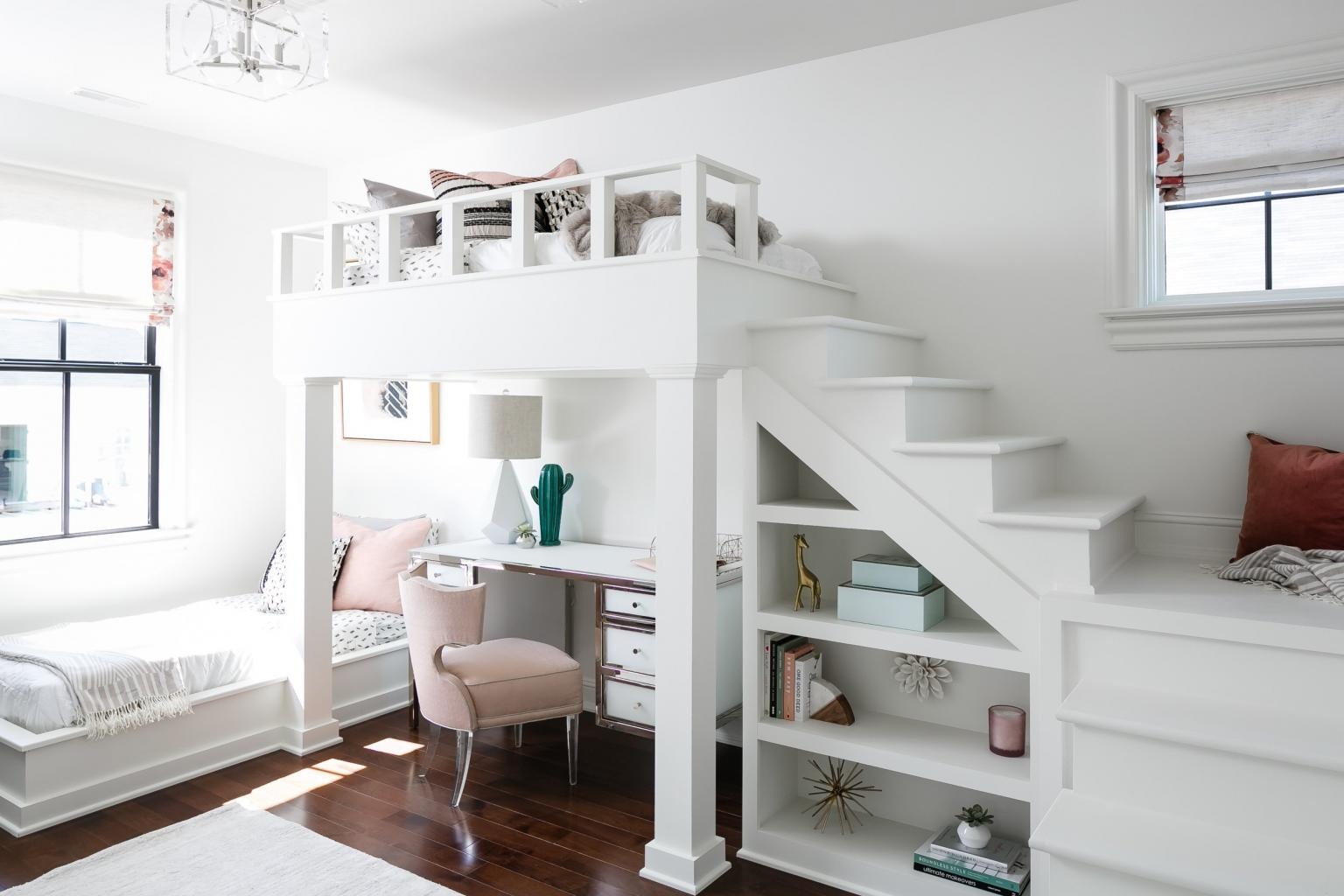 Praktikusak. A második szint több célt is szolgálhat. Például az ágyhoz vezető lépcső tároló polcokként is használható.